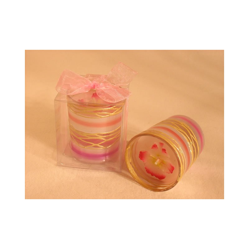 Hier sehen sie die Kerze in Rosa. Sie wird wie auf dem Bild zu sehen in einer schönen Verpackung mit Schleife geliefert, also auch wunderbar als Geschenk zu verwenden.