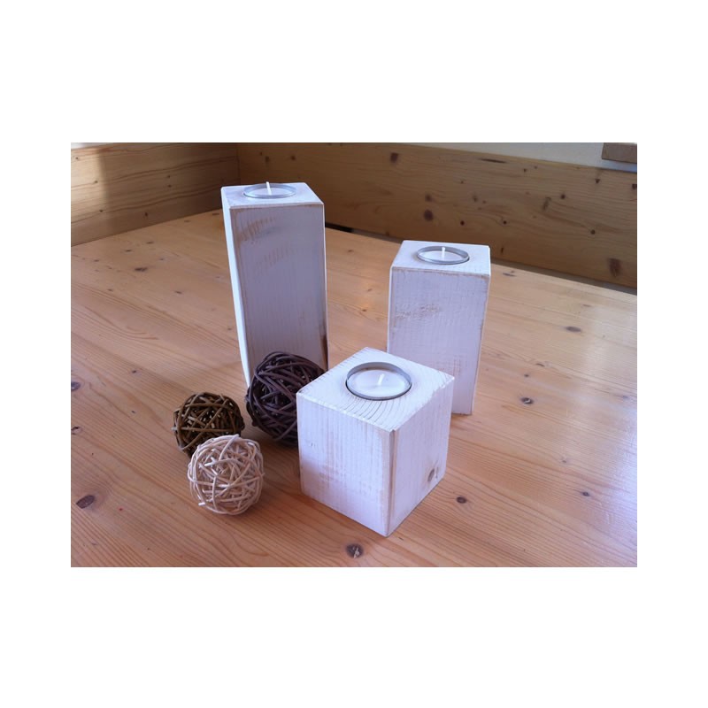 Zusätzlich zum Kerzenlicht sorgt das im Vintage-Stil bearbeitete Holz für eine warme und entspannte Atmosphäre.
